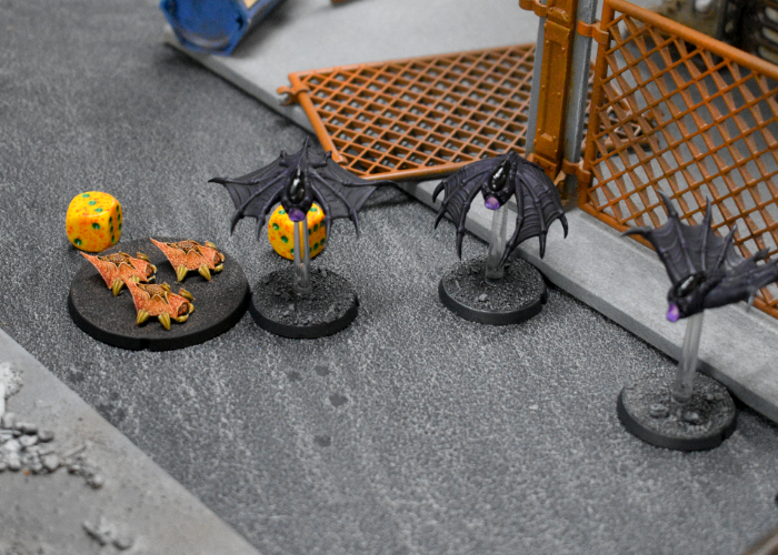 With the need to hang around the no-longer-secret Cache gone, the Vepor Thralls charged the Minnow flock, their diminutive forms evading the Angels' Defensive Fire. The thralls' mandibles inflicted an injury on the Minnows, pushiong their suppression up and causing another suppression injury - taking out a Minnow.