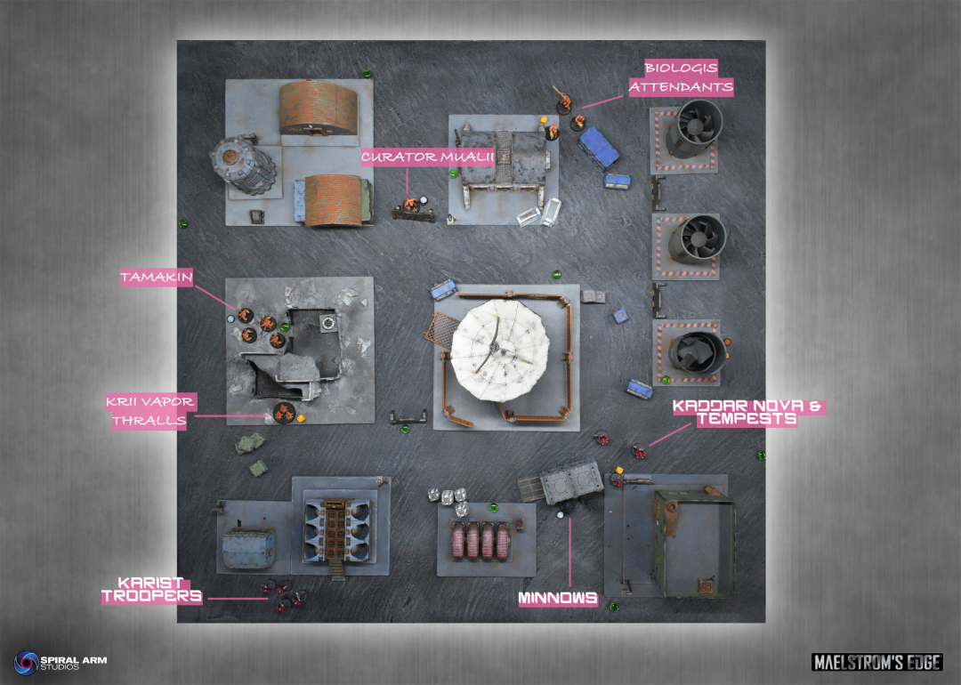 Curator Mualii remains in place behind his barricade, his staff cutting down one of the remaining Assault Troopers and leaving the survivor Confused. Spending another command point, Mualii finished his activation by spawning a new unit of Tamakin by the Breakthrough line.