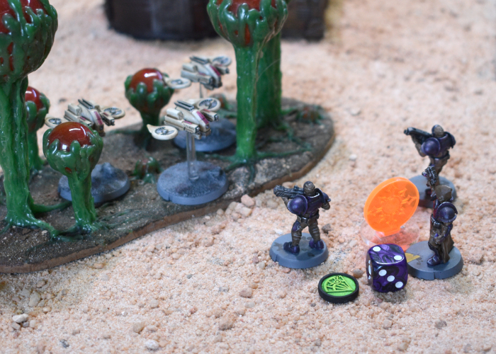 The Karist trooper unit sought some payback against the Fireflies, pistols and grenade launcher bringing down one of the fragile flying drones. The troopers were unsuccessful in shaking off their own suppression, rolling a 2 for their WP test.