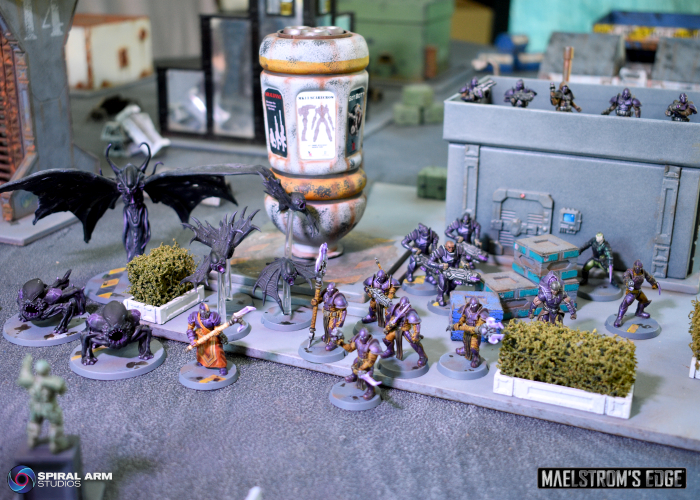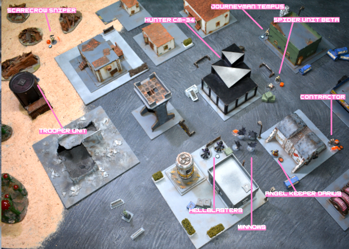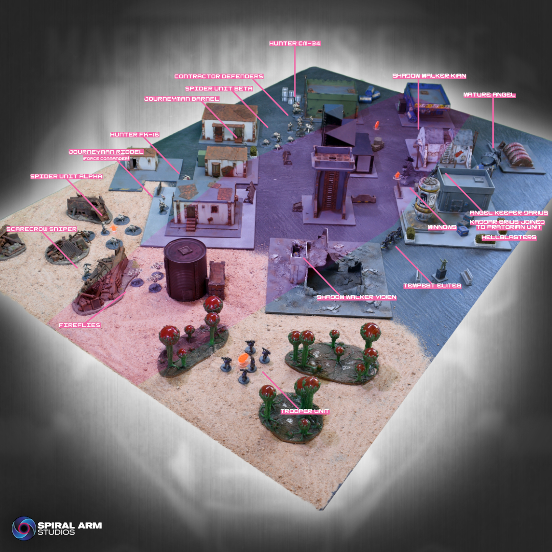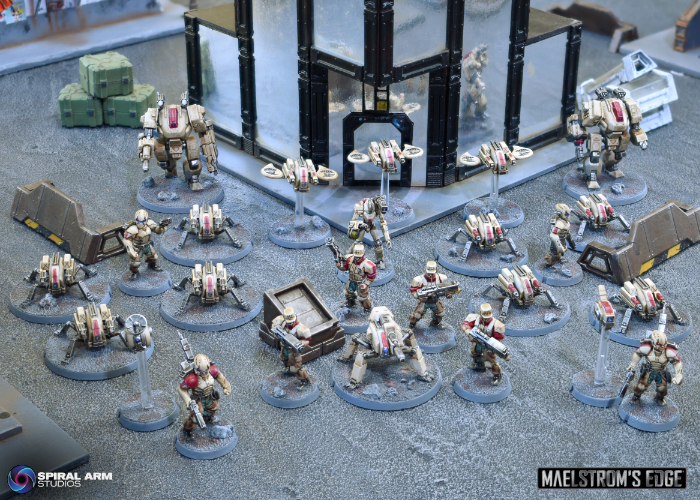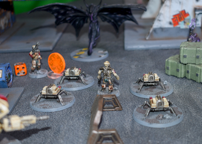 The loss of both Journeymen in turn 1 to the incredibly fast moving (and deadly!) Shadow Walkers left things looking rather grim for Iain at the start, as Epirian forces rely on the synergy between their Handlers and Bots to make the most of their capabilities. Some lucky rolls and the return of a Journeyman back to the table meant that he was able to claw things back, with the early loss of the Praetorians and Mature Angel, and the unwise charge of the initial Minnow unit seeing things fall apart in the center for Michael.