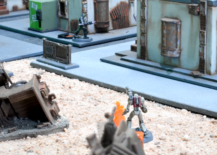 Electing to keep up his momentum, Iain kicked off the turn by activating the Scarecrow, taking aim once more at Kian. The Shadow Walker found himself once again unable to Dodge a Critical hit, and succumbed to the Scarecrow's precise fire.