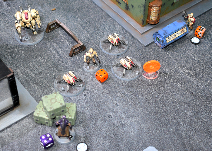 At the conclusion of the turn, the remaining Minnow chose discretion over valor and left the battlefield. Each side had scored 18 Victory Points for the Assassination objective, however two of the Dig markers were unclaimed, with the other two contested. The Epirians received an additional VP for the Master of Machines faction objective, bringing their total to 19.
