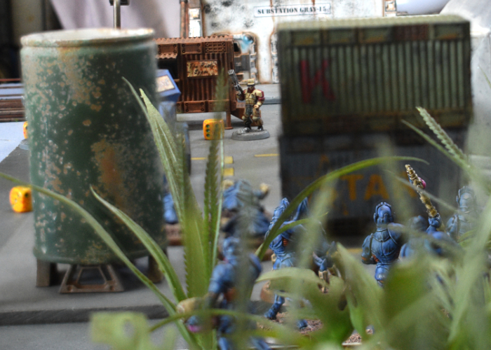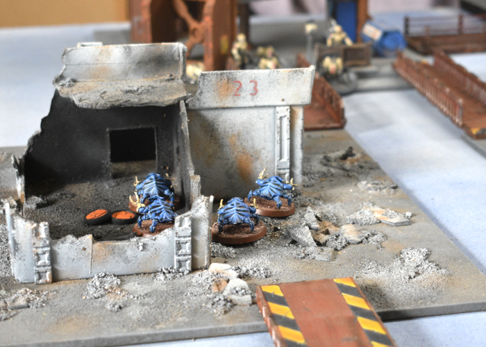 With Priority going to the attacking Kaigus Pact, the Vapor Thralls scuttled forward into the plaza in front of the hydroponics facility, clouds of Concealing Vapor emanating from the orifices on their backs.