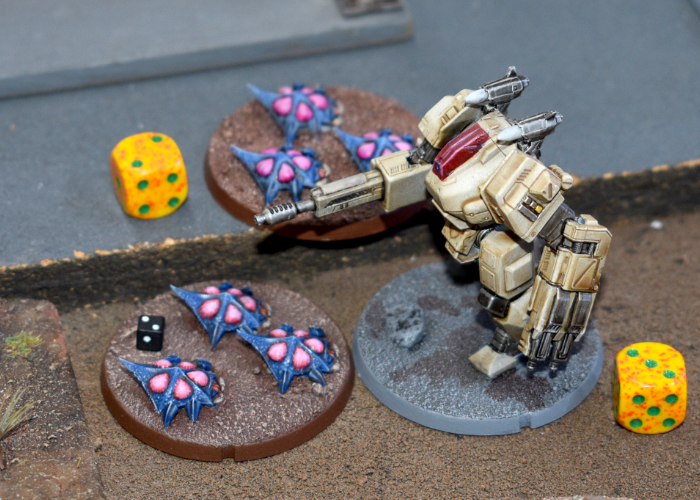 The Tamakin are overwheled by the Hunter warmechs impressive firepower.