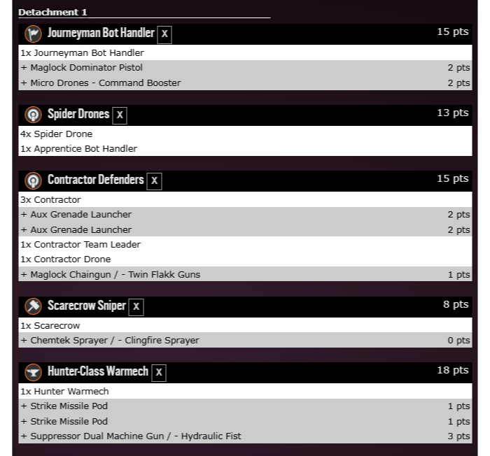 Behind the now depleted Krii, the dart Tamakin brood advanced, aiming at the Contractor Defenders. Their weak dark hosts were unable to inflict damage, but the Sentinel Strongpoint unit to the Tamakins'rear was more successful, their Brood Launchers showering the Contractors with acidic projectiles. The Epirians' reasonably priced armor was not up to the task, with three Contractors and their drone collapsing under the onslaught, leaving just the team leading standing on suppression level 3.