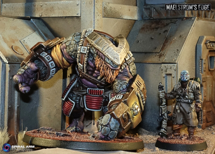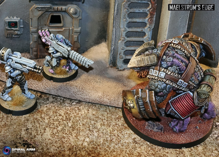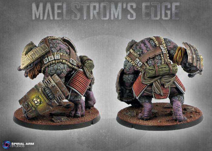 Originally hired and transported to systems requiring extreme manual labour or exposure to elements lethal to humans, their normally calm, thoughtful temperament made Gnolti easy to integrate into human society. Gnolti are extremely loyal to those who treat them well, gladly risking themselves to protect their friends. Despite being incredibly useful, Gnolti are often denied berths on planetary evacuation ships due to their extreme size. Gnoltis have few opportunities to escape the Maelstrom, and stranded Gnolti are a common recruit into the ragtag warbands of the Broken, where their physical power can be a huge asset.